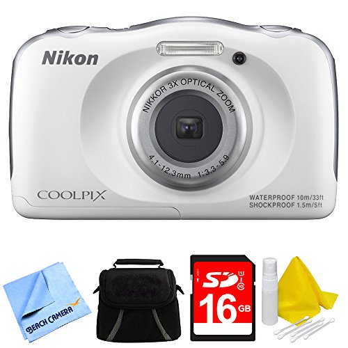 Bundle Includes COOLPIX S33 13.2MP Digital Camera - White Compact Deluxe Gadget Bag 8GB Secure Digital SD Memory Card 3 Piece Lens Cleaning Kit Micro Fiber Cloth Features High-performance NIKKOR lens EXPEED C2 image-processing system 6.7...