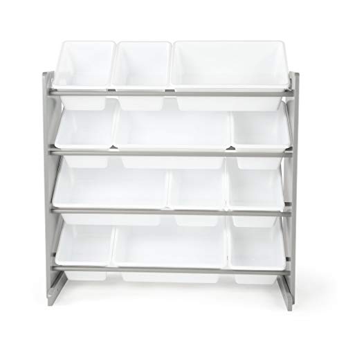 This space-saving Tot Tutors kids toy storage organizer with 12 plastic bins stores lots of children's toys in easy-to-see, easy-to-access plastic bins. The 8 standard and 4 large easy access storage containers are removable, making it fun for...