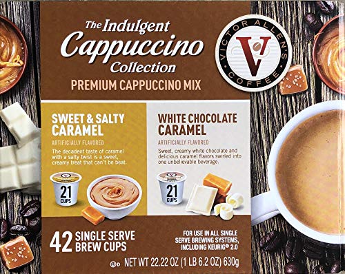 The Indulgent Collection Premium Mix, WHITE CHOCOLATE CARAMEL AND SWEET & SALTY CARAMEL Cappuccino 42 Cups, Single Serve Brew Cups Compatible with Keurig K Cup brewers including 2.0...