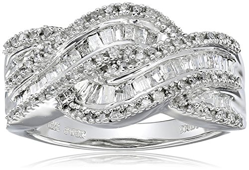 Round and baguette diamonds display their eye-catching sparkle in this beautiful twist knot ring. Crafted in polished 10 karat white gold and embellished with 1/2 carat of channel- and prong-set diamonds, it's a graceful design that's sure to...