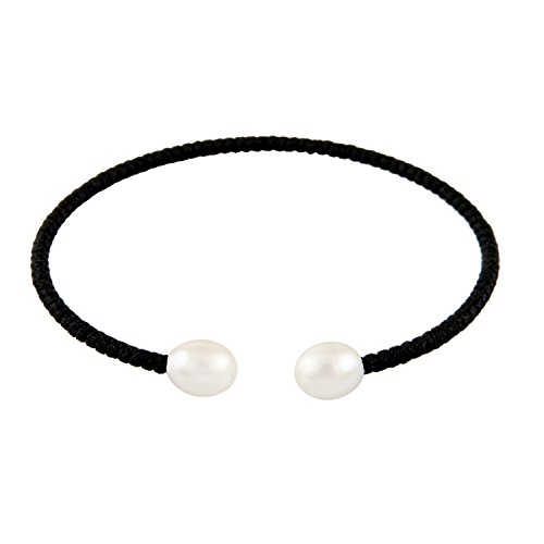 Black Cord Bangle Bracelet with \n7-8mm White Drop Shape Handpicked AAA+ Freshwater Cultured Pearlss