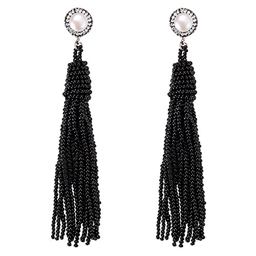 Chic and Trendy Beaded Tassel Earrings Features: ?Cultured Pearl?Approximate 650 Crystal Glass Beads?A Beads Strand Go Around As a Cover, Cotton Inside ?Traditional Freehand Method ?Not Too Heavy,Perfect length Perfect for all occasions Unique...