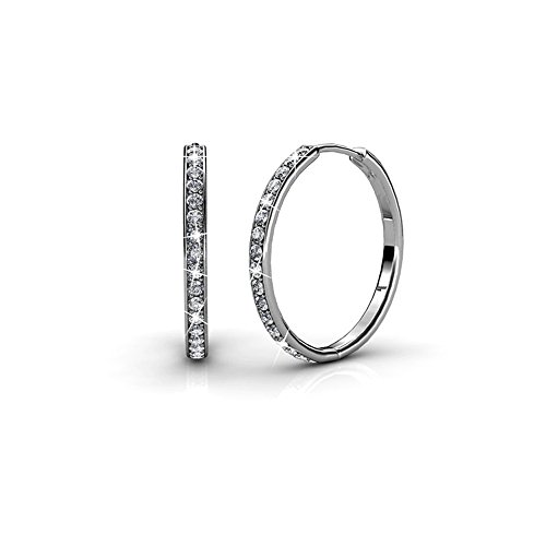 HIGH QUALITY LUXURY DESIGNER BIANCA SWAROVSKI EARRINGS The Luxury Bianca hoops are perfectly lined with breathtaking round cut swarovski crystal stones along a 18k white gold plated channel set hoop design. KEY FEATURES: MATERIAL: 18k White Gold...