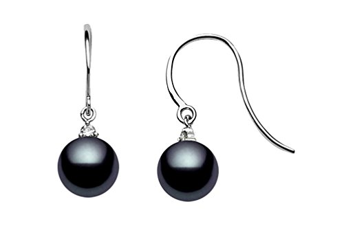 This pair of black Akoya cultured pearl earrings are one of our most popular dangling earrings. They can dress up a causal outfit or complement the finest evening wear. These cultured pearls are set in 14k white gold and enhanced by two luminous...