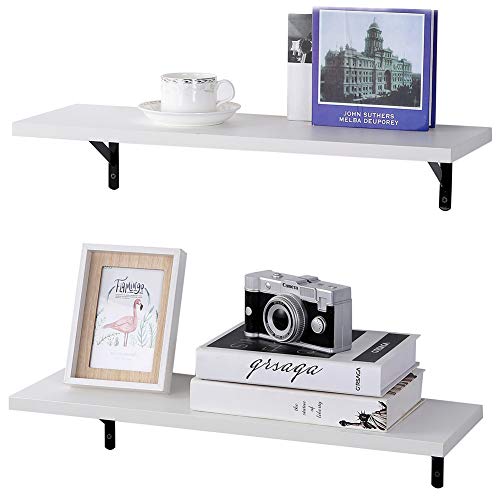 Create Space with Elegance The freshness of matte white and the brilliance of the silver metal brackets are combined in this set of 3 SONGMICS floating shelves with different lengths of 15.7", 19.7" and 23.6" and depths of 5.9". Not only do they...