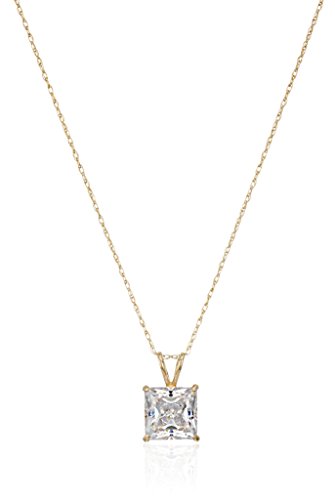 Gold pendant necklace featuring princess-cut Swarovski Zirconia stone in four-prong setting with rabbit-ear bailRope chain with spring-ring closureMade in the United...