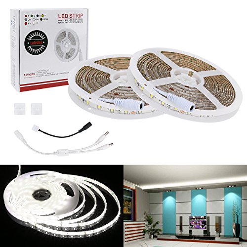Onforu 50ft Waterproof LED Strip Lights, 6000K Daylight White, 12V Under Cabinet Lighting Strips 50FT/ 15M LONG DESIGN: This 50ft LED strip lights includes 450 super bright cool white LEDs, each LED can produce 12lm; With a 50-feet-long design,...