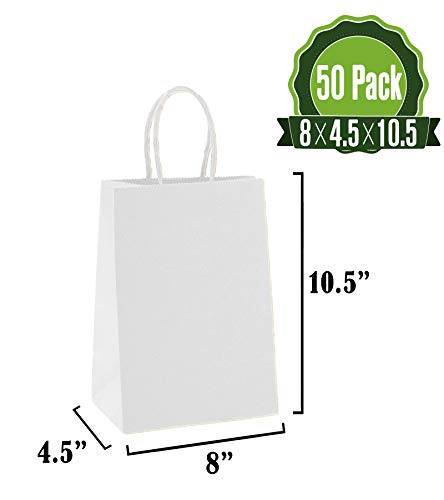 Product is made from recycled material. Durable Kraft paper material. Twisted paper/rope style handle. 5.25" wide x3.25" deep x 8" high (handle not included in overall size) White Kraft Paper Bags , Gift Bags, Wedding Bags, Retail Bags,...