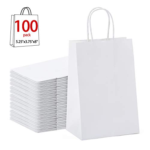 5.25″x3.25″x8″ – 100 Pcs – Bagsource White Kraft Paper Bags, Shopping, Mechandise, Party, Gift Bags