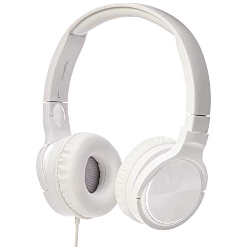 An Amazon Brand Lightweight headphones in White with comfortable on-ear design that minimizes outside noiseL-shaped stereo mini plug for connecting to your phone, MP3 player, computer, or other device with a 3.5 mm jackFrequency range of 12...