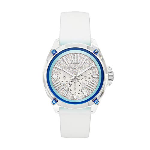 This 42mm Wren watch features an all-over pavé silver-tone dial, with a touch of iridescent blue detail, multifunction movement and white silicone strap. This 42mm Wren watch features an all-over pavé silver-tone dial, with a touch of...