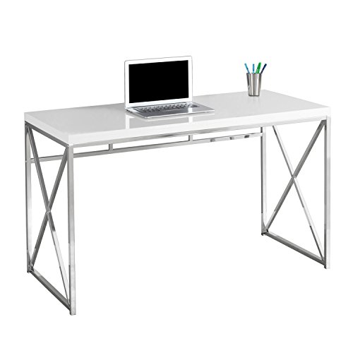 This sleek and contemporary glossy white work desk is the perfect combination of function, durability and design in a modern form. With clean lines, thick panel construction and silver crisscross metal legs, this desk will add pizzazz to any home...