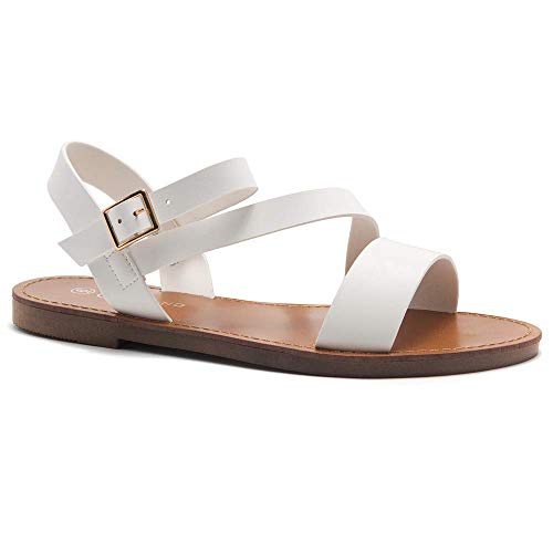 Donnoddi This lightweight flat sandal features an open toe loop strap, strap over vamp, lightly padded insole. Available in Black, Cognac and Rose Gold. Available in size 5-11 Synthetic soleHeel measures approximately 0.25"Cute thong strappy...