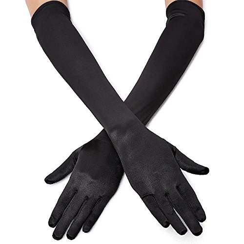 1920 Vintage dress accessories, Homecoming/prom wearing, Wedding accessories. This shiny satin 12BL glove is opera length fits all because of the stretch quality. It is made of a comfortable 89.3% nylon and 10.7% spandex. It is absolutely perfect...
