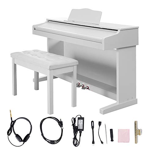 Feature ?480 kinds of Tones,200 Rhythms,80 Songs,64 Polyphony,LCD Display Screen ?Can play together with two people ?With Music Stand and Pedal,USB/MIDI Terminal ?Multiple Functions;Headphone Included ?Built-in stereo speakers for high quality...
