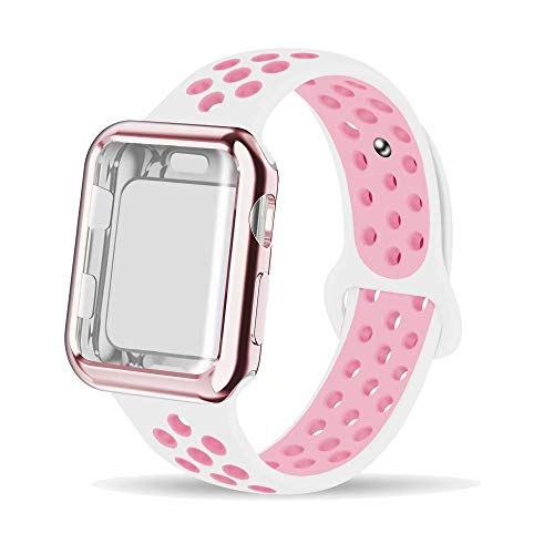 INTENY Compatible for Apple Watch Band 44mm with Case, Soft Silicone Sport Wristband with Apple Watch Screen Protector Compatible for iWatch Apple Watch Series 1,2,3,4 Premium Material: The apple watch bands are made of high quality silicone and...