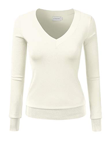 JJ Perfection Women's Simple V-Neck Pullover Soft Knit Sweater (Plus Size Available). MEASUREMENTS AWOSWL0198: S - Shoulder: 14n. / Chest: 33.9in. / Sleeve Length: 23.6in. M - Shoulder: 14.4in. / Chest: 35.8in. / Sleeve Length: 24in. L -...