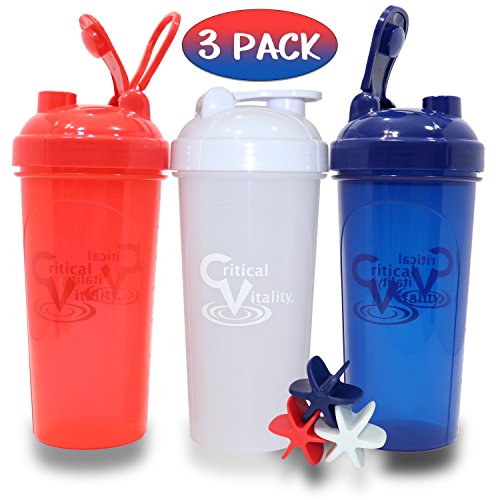 You Get 3 Durable, Practical, and Excellent Mixing Shaker Bottles in Red, White and Blue with this Patriot Series Bottle Set by Critical Vitality. The Patented Design includes a Flexible Ball that makes mixing up a smooth beverage Quick and Easy....