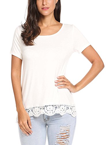 Kancystore's clothes are fresh, please give yourself a chance to be a topic woman.Kancystore Womens Short Sleeve Loose Tops Solid Basic Lace Trim Casual T ShirtsPatchwork Lace Hollow Out Wave Brim and High-Low Hem Design, Makes A Casual and...