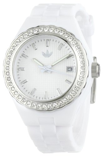 Add the element of genuine style with a sporty twist to your wardrobe with this Adidas watch. Displays date on dialCase diameter: 35 mmComfortable polyurethane band for all day wear. You won't even notice it's on your wrist, but other people...