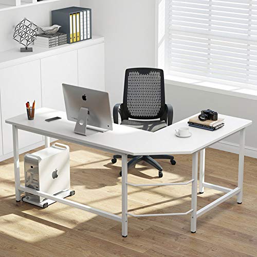 Tribesigns L Shaped Office Desk Coner Computer Desk - Sturdy & Big Capacity 450lbs This simple design l shaped desk includes two rectangular desktops (one 49.21" and the other 47.24" in wide) and steel metal legs, which all join together in an L...