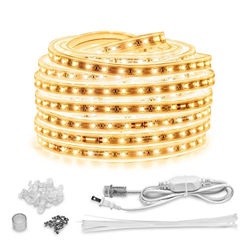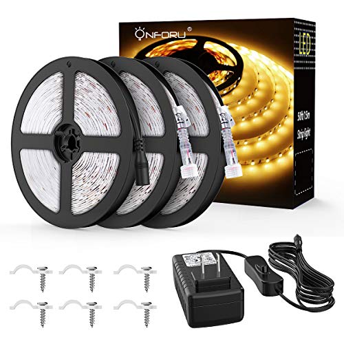 Onforu 50ft/15m Waterproof LED Strip Lights Kit, 3000K Warm White, 12V Flexible LED Rope with 450 SMD 2835 LEDs, UL Listed Power Supply with Switch, IP65 Waterproof for Indoors and Outdoors 50FT/ 15M LONG DESIGN: This 50ft LED strip lights...