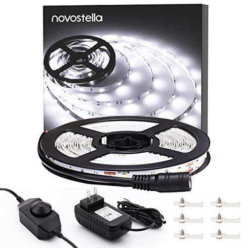 Laimante RF controlled dimmable strip lights kit has 45ft remote range and the strong signal can pass through the metal, glass cabinet etc. Specifications: Color: Daylight White. Strip Length: 5m/16.4ft. Type: SMD 2835 LEDs. Quantity: 300...