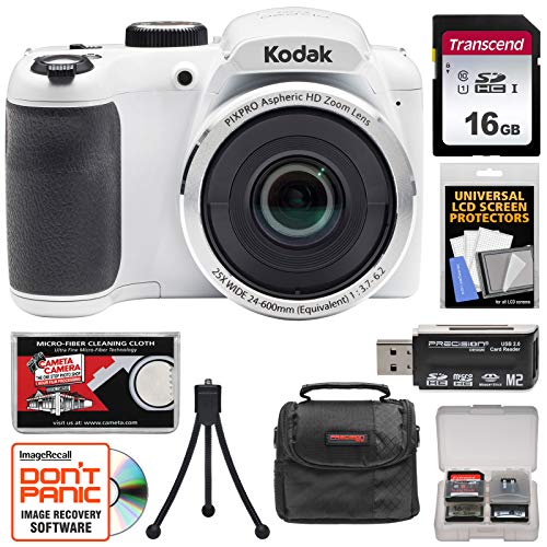 Kit includes:? 1) KODAK PIXPRO AZ252 Astro Zoom Digital Camera (White)? 2) Transcend 16GB SecureDigital SDHC UHS-I Class 10 U1 Memory Card ? 3) PD PD-C10 Camera / Camcorder Case ? 4) PD SD & MicroSD SDHC / SDXC Memory Card Reader ? 5) PD Flexible...
