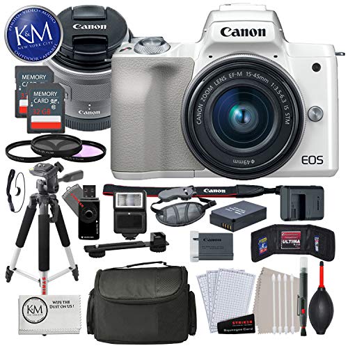 Canon EOS M50 Mirrorless Digital Camera with 15-45mm Lens (White) Includes: Canon EOS M50 Mirrorless Digital Camera with 15-45mm Lens (White) Canon EF-M 15-45mm f/3.5-6.3 IS STM Lens (Silver) Canon LP-E12 Lithium-Ion Battery Pack (7.2V, 875mAh)...