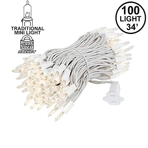 This 100-light Clear mini Christmas light set is 34' long with 4" bulb spacing and ideal for decorating trees, shrubs, wreaths, garland, and craft projects. You can connect up to 5 strings end-to-end for a total of 170 linear feet, making these...