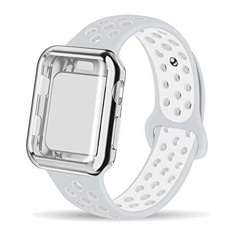 INTENY Compatible for Apple Watch Band 42mm with Case, Soft Silicone Sport Wristband with Apple Watch Screen Protector Compatible for iWatch Apple Watch Series 1,2,3,4 Premium Material: The apple watch bands are made of high quality silicone and...