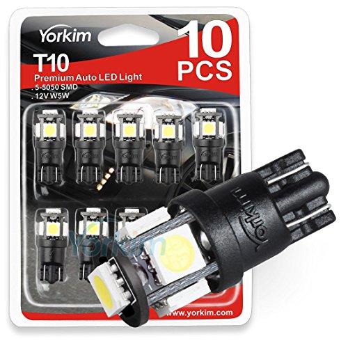 Includes 10 pieces of Yorkim Brand Led Series Wedge Bulbs, super bright T10 5050 5-SMD LED bulbs. Each T10 LED bulb contains 5 Beautiful High Quality 5050 SMD LEDs , which are much brighter than the stock OEM yellowish tungsten lamps. ...