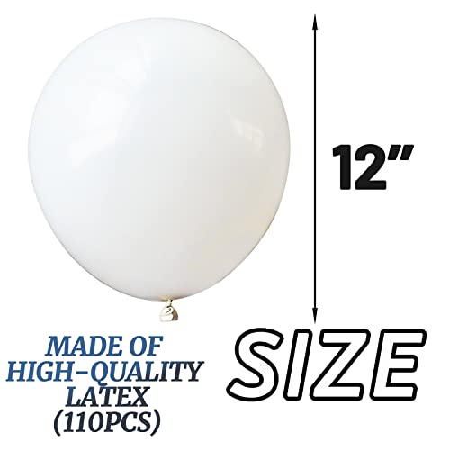 110pcs White Balloon 12 inch, White Latex Balloons for Birthday Party Baby Shower Wedding(with 2 Ribbons).