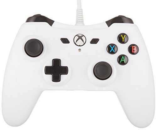 - White wired controller for Xbox One plugs directly into Xbox One via 9.8-foot USB cable