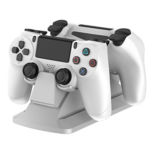 1. Enables you to power up two DUALSHOCK 4 wireless controllers. Featuring a polished white and matt finish to match your DUALSHOCK 4 wireless controllers and PS4 system; comes with a usb cord, charging your PS4 official controllers fast and safe.