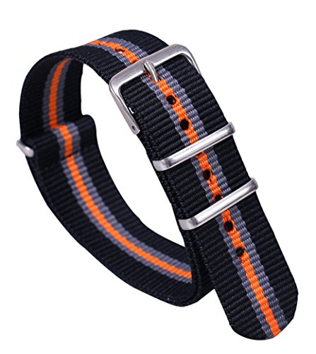 - The NATO James Bond style nylon watch band, impresses with the quality of exotic nylon and workmanship. The nylon watch band is very popular to its unique characteristics, incredibly simple and comfortable, soft and breathable, lightweight and washable, durable and wet resistant. Casual yet vibrant, fashion appearance, different colors of the NATO style band deduce the unique style of your Nordic simplicity.