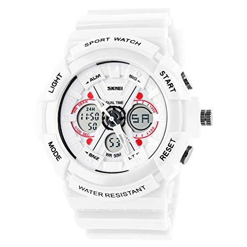 Fanmis Unisex Sport Watch Analog/Digital Dual Time Multifunction Alarm Led Wristwatch White