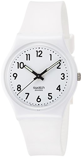 Plastic case. Silicone strap. White dial. Swiss quartz movement. Water resistant 30 meters. Case 34 mm.