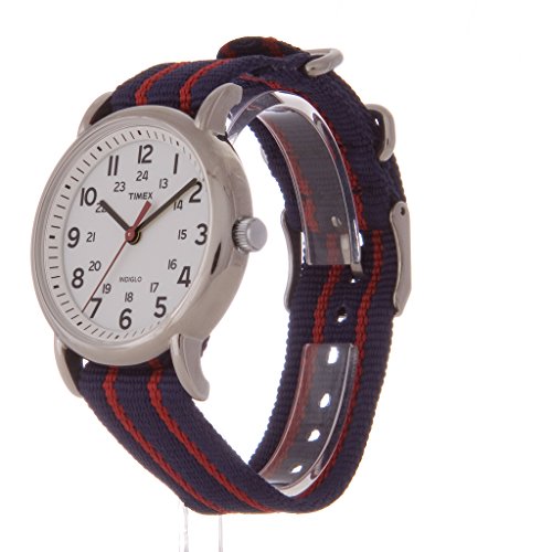 Home » Watches » Timex Unisex Weekender 38mm Watch – Silver-Tone Case White Dial with Blue & Red Fabric Slip-Thru Strap