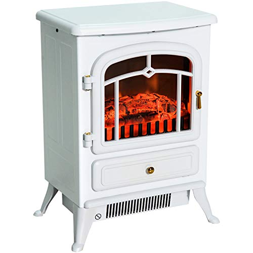 HOMCOM Freestanding Electric Fireplace Heater with Realistic Flames, 21″ H, 1500W, White