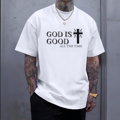 Wedsadl God is Good Shirt Christian Jesus Cross T Shirts for Men Religious Faith Inspirational Vintage Oversized Graphic Tees(White,XL)