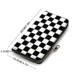 Qwalnely Checkered Wallet Leather for Women Black and White Purse Phone Cre…